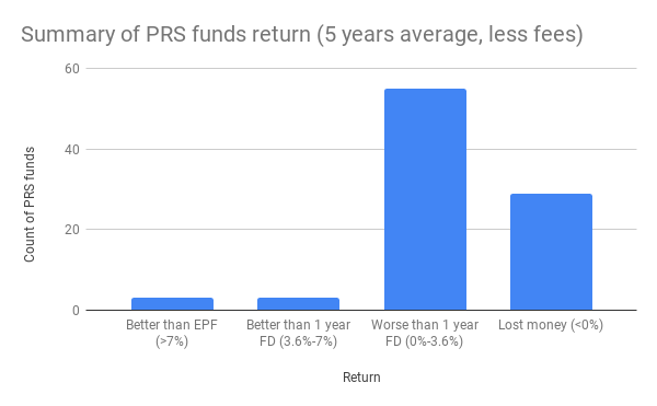 By now, it should be clear that PRS funds are a retirement money sucker. Keep your money in the EPF or a diversified ETF until the PRS funds get their act together.