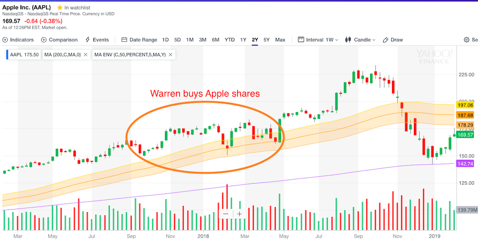 Take the example of Apple, whose stock price plunged about 1/3 of its peak value from September 2018. The average investor, particularly those who do short term trading based on stock chart movements, would likely have been spooked and decided to ‘cut their losses’ during this time. Warren was holding onto $43 billion of Apple shares as of the end of September and would have seen about $14 billion wiped out by New Year Eve of 2018.