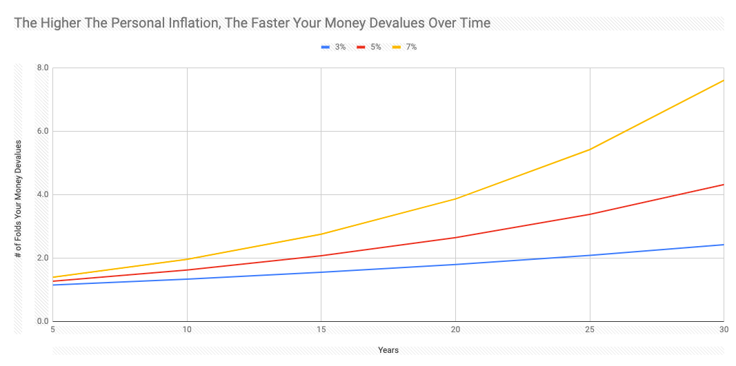 - Your personal inflation – how much do the stuff that you buy go up in price year to year? This is very personal and can be very different from the country’s official inflation figures.